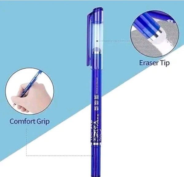 Pen Erasable Gel Pen Set With Attached Magic Wipe Eraser (0.35Mm Nib Size) 3 Gel Pen Pack